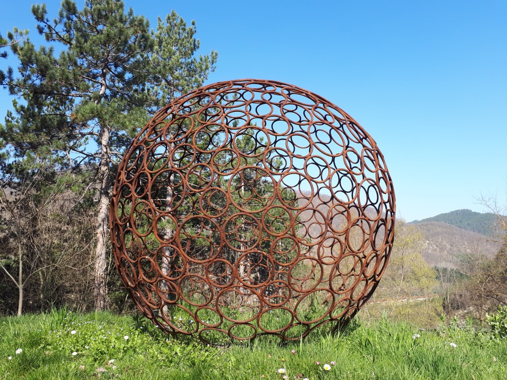 Cornelis was inspired by the human search for perfection. Pi is an irrational and transcendental number. Pi artwork is a perfect metal sphere in its totality, but it is made up of three different sizes of circles that do not always manage to touch each other. Perfection in imperfection as a human condition results in beauty and harmony. The circle is a basic geometric shape used by the artist and here the single circles are united to create the main sphere: Pi is also the leit motiv of the full process. The iron artwork is currently placed in the garden of the sculptor’s residence in Italy.